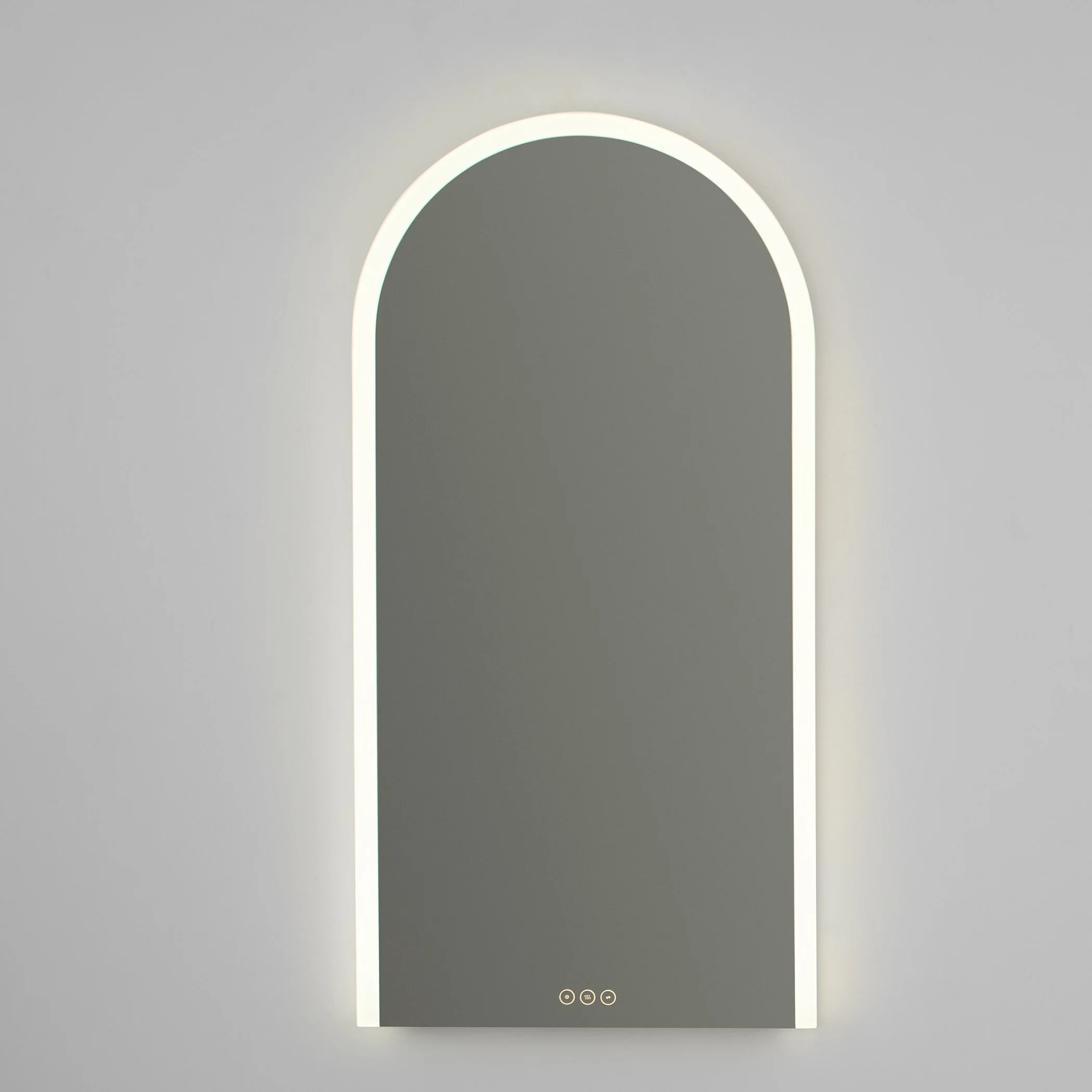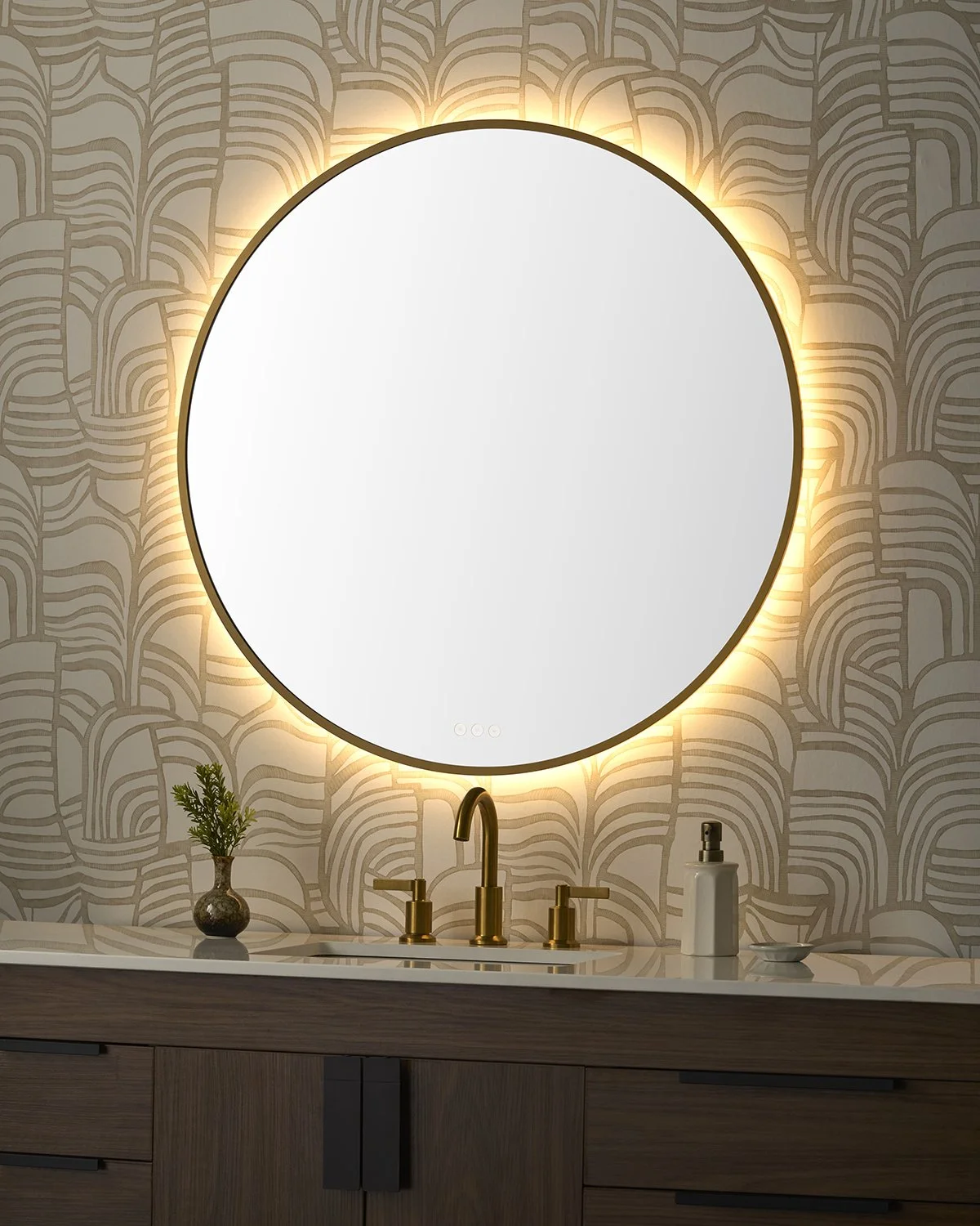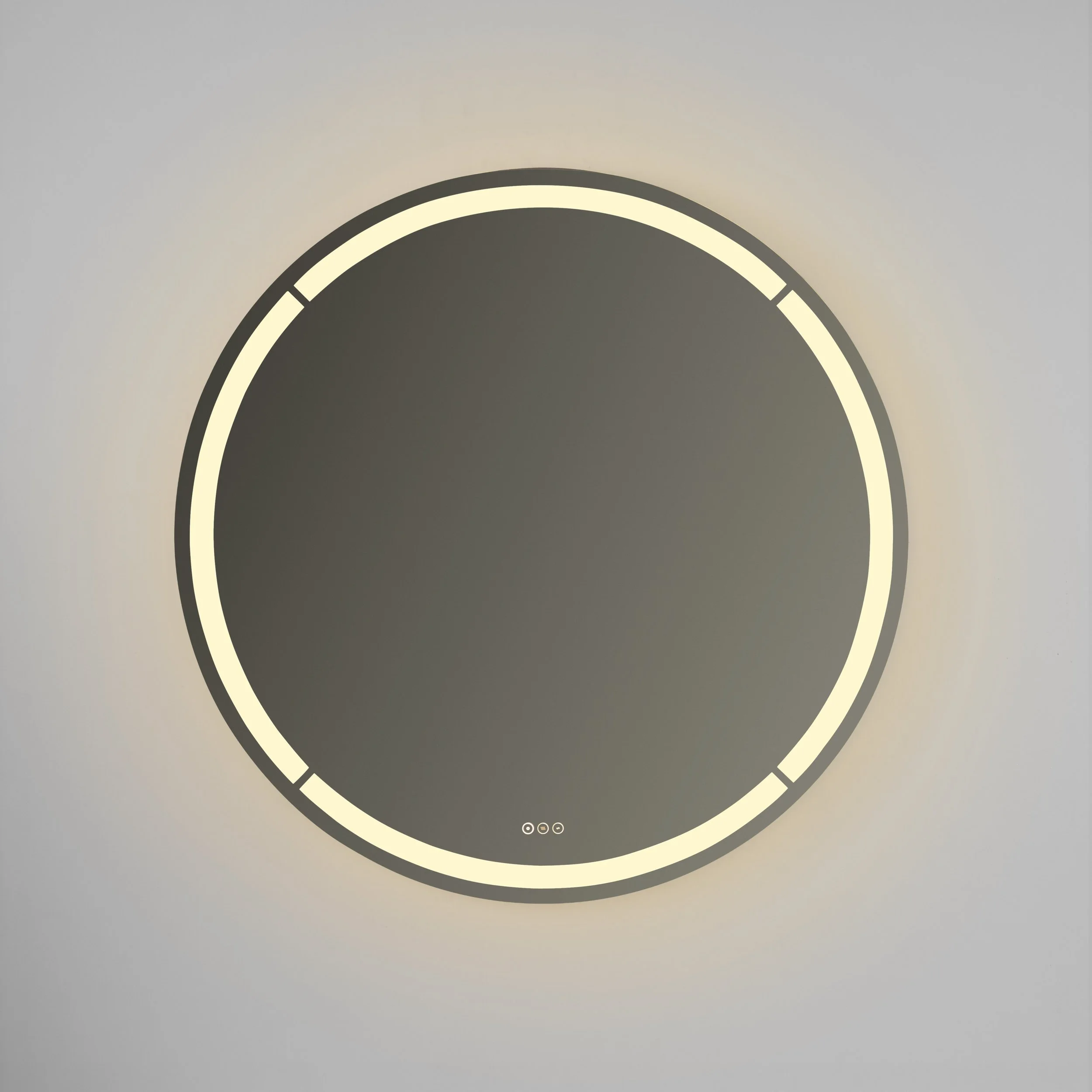 The Eterno Family of mirrors elevates your daily routine and adds a contemporary twist to the classic round-lighted mirror. Adjustable LED lighting allows you to select color temperatures from 2700K to 6500K and fine-tune brightness with dimming capabilities. Wide diffusers and ambient backlighting provide consistent illumination, while the integrated defogger always keeps the mirror fog-free.